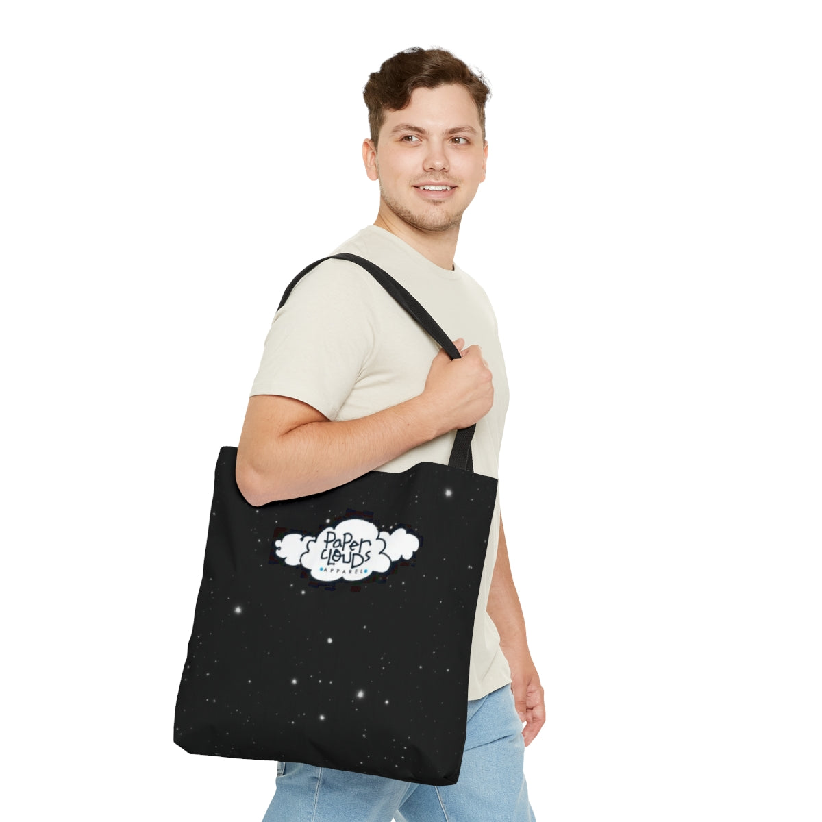 Step into the boundless universe with our Paper Clouds Space Tote Bag. Adorned with a captivating space pattern, this tote captures the beauty of the cosmos while holding all your essentials. By choosing this tote, you're also supporting To Cure A Rose, as 50% of the profits from each purchase contribute to their mission of advancing genetic treatments and improving the lives of those facing rare genetic diseases.